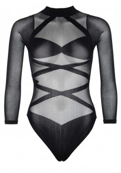 2-Delig criss cross bodysuit met lange doorzichtige mouwen en bijpassende kousen van Leg Avenue.